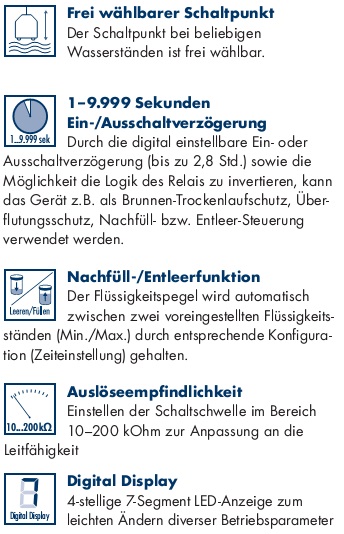 von Wasser oder bei Erreichen des vorher definierten Pegelstands spricht das Relais des